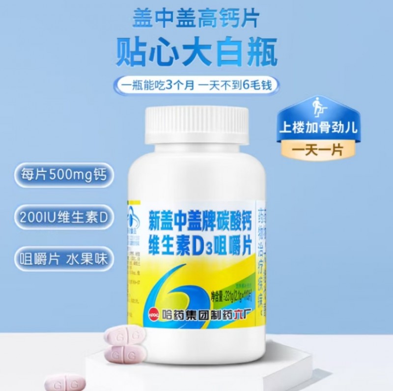 哈药旗下盖中盖品牌深耕营养健康领域多年,其钙系列产品以“吸收好、配方优、适用广”著称。以经典产品“新盖中盖牌 碳酸钙维生素D3咀嚼片”为例,这就是一款老少咸宜的国民补钙产品。它以碳酸钙为主要钙源,辅以维生素D3,实现“钙+D”协同作用——维生素D3能有效促进肠道对钙的吸收,并帮助钙在骨骼中沉积,提升补钙效率。