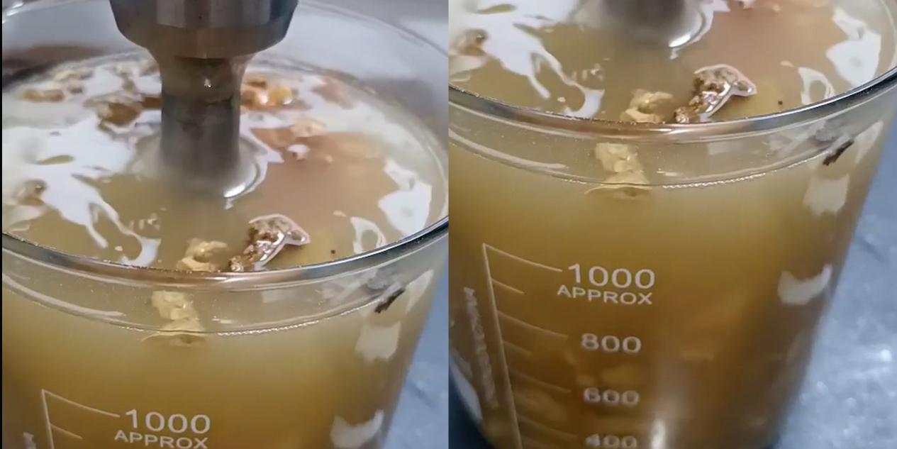 生姜是一种随处可见的蔬菜,也是一味中药药材,药性温和,具有解表散寒、理气健脾、温经止呕等功效,我们先将生姜切片并泡入放满水的500ml烧杯中,并用我们的实验级声化学进行了10分钟的试验,产品及检测效果如下:
