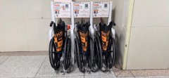 在产品设计与使用体验上,腾悦科技共享轮椅聚焦医疗场景用户 需求,细节优化直击实际使用痛点 —— 操作指南统一贴于共享轮椅桩位正面,采用防水耐磨的PET材质印刷,清晰标注专属二维码、分步操作流程、设备编号及客服电话,用户靠近桩位即可直观查看,无需额外寻找。硬件方面,采用航空级轻量化铝合金一体成型车架,整体重量 9公斤,搭配静音万向轮与防滑橡胶胎,推行阻力大幅降低,女性家属或老年用户也能轻松操控,额定载重达140公斤,通过国家相关质量监督检验认证,兼顾灵活性与安全性,无需任何定制即可无缝适配门诊大厅、急诊通道、住院楼层、检查中心等各类医疗场景;折叠后 占 0.25平方米空间,配合桩位有序停放,既不占用医院公共通道,又能提升设备调度效率,优化医院公共区域布局。